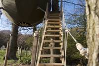 It certainly looks fun and intriguing from the outside – but it feels completely practical inside. Two eye-shaped beds are set into the curve of the wall at either side of the room, both plenty wide enough in the middle, but tapering to a point for the head and feet. This thoughtful use of space makes the pod feel really quite roomy between the beds. There’s also enough space for a table and a wood-burning stove. Each bed has a window beside it and there’s a circular skylight in the centre of the roof – a design idea borrowed from traditional yurts – so the tent has plenty of light flooding in, and campers can enjoy close-up views of the trees all around. Lying in bed, staring up at the birds flitting from branch to branch, you feel very much part of the canopy, a feeling accentuated by the very light movement of the tent as the trees sway in the wind. The movement is soothing rather than disconcerting, but it’s still good to know that it’s all secured firmly by hi-tech fibre ropes, which are apparently stronger than steel wire.